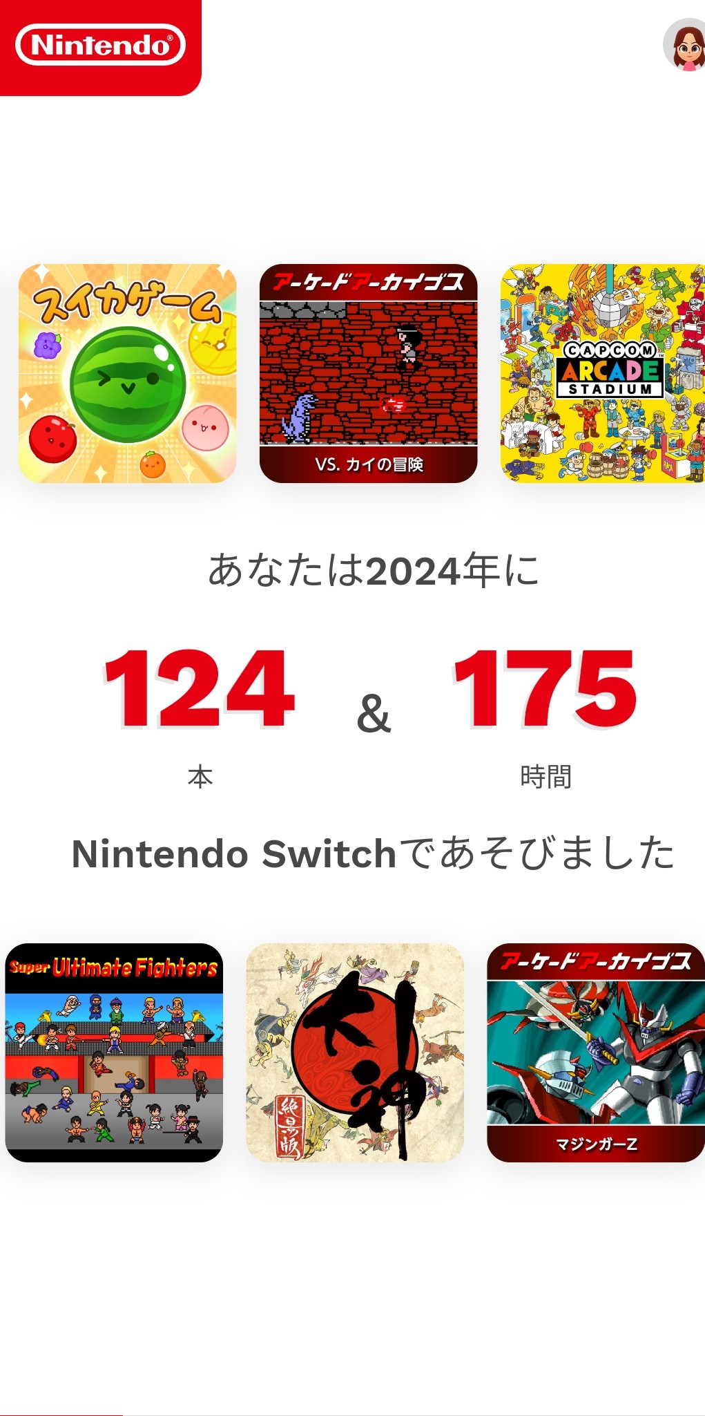 ニンテンドーアカウントのオンライン上の記録になります。