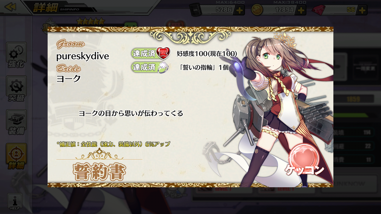ヨークちゃんとケッコンしました!これで7人目!