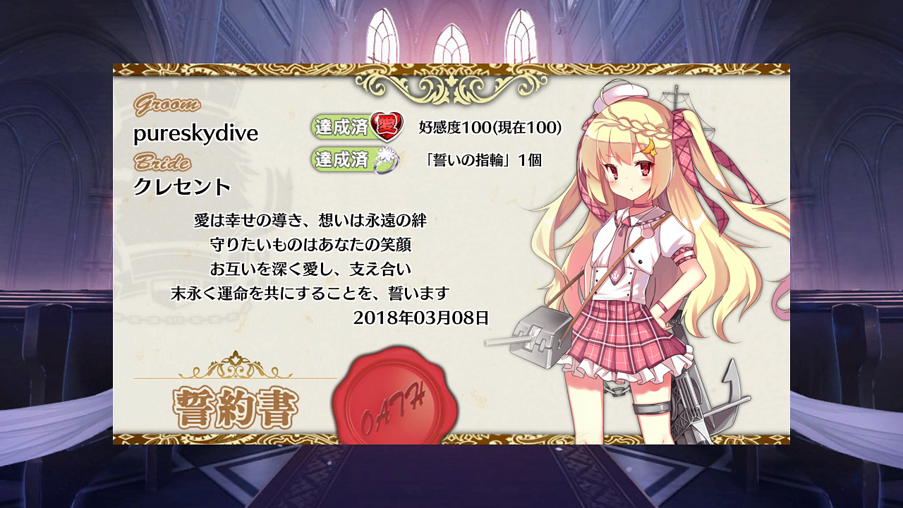 【アズレン】その18 クレセントちゃんとケッコンしました!【アズールレーン】