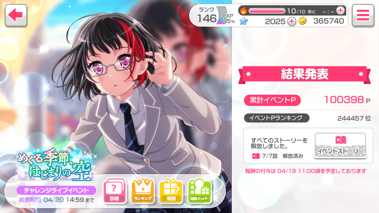 2019年04月29日14:50【バンドリ】その70「めぐる季節、はじまりの空」イベント【ガルパ】